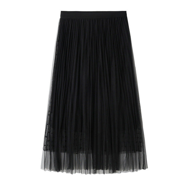 Double Layer Pleated Retro Long Elastic Waist tutu skirt 50*
